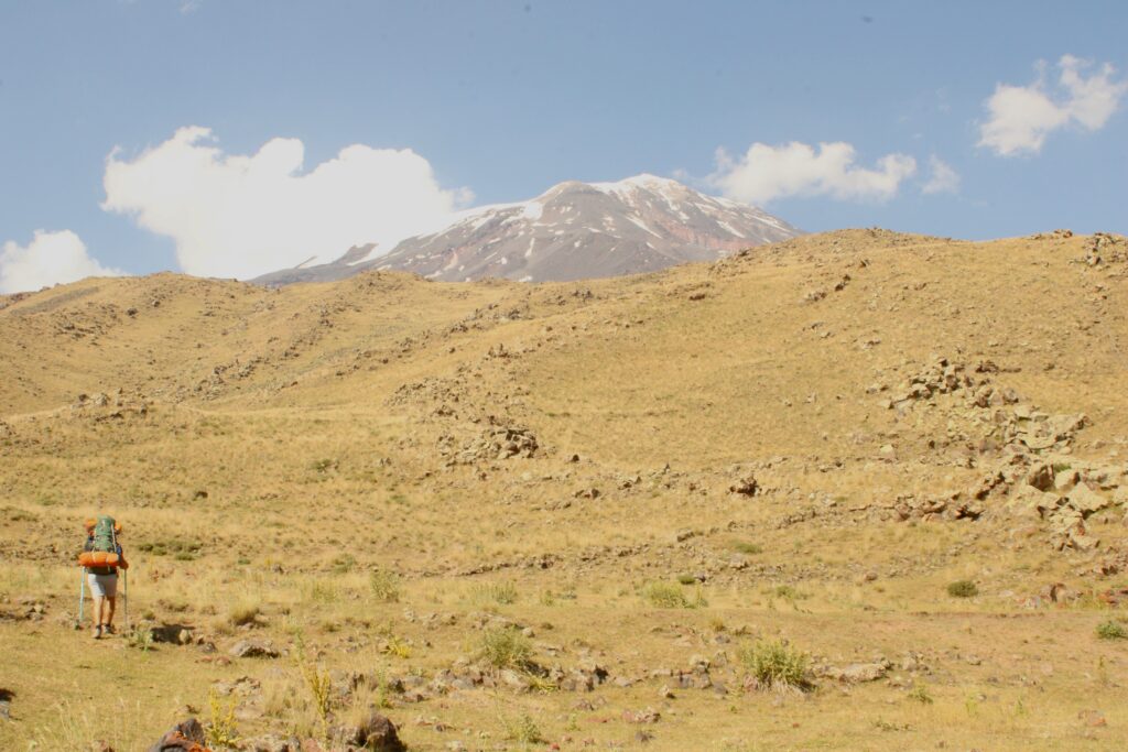 18 Temmuz 12.00’da Bursa otogarından binip 23 saatlik destansı yolculuğumuzla 19 Temmuz 11.00’da Doğubeyazıt’a vardık. Otogarın karşısından minibüslere binip 10 dakikada meydana geldik, alışveriş yapıp yemek yedikten sonra iki kişi olduğumuz için taksiyle anlaşıp yola çıktık fakat taksici eski yoldan götürdüğü için çevirme köyüne gelmeden bayağı geride bizi bıraktı. (Daha sonra diğer dağcılardan hem Çevirme köyünden yaylaya kadar hem de Eli köyünden 3400 kampına kadar düzgün ve yeni bir yol olduğunu öğrendik.)