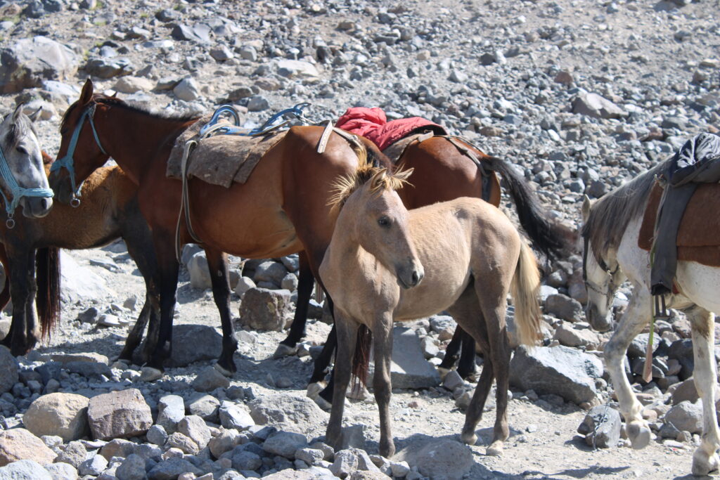 Sabah 11.00 gibi kamp yükümüzün bir kısmını zirve çantalarımıza alıp aklimatizasyon için 4200 kampına yürüyüşe başladık, burada da patikayı takip etmek oldukça kolaydı ve ekstra dikkat edilmesi gereken bir etap yoktu.